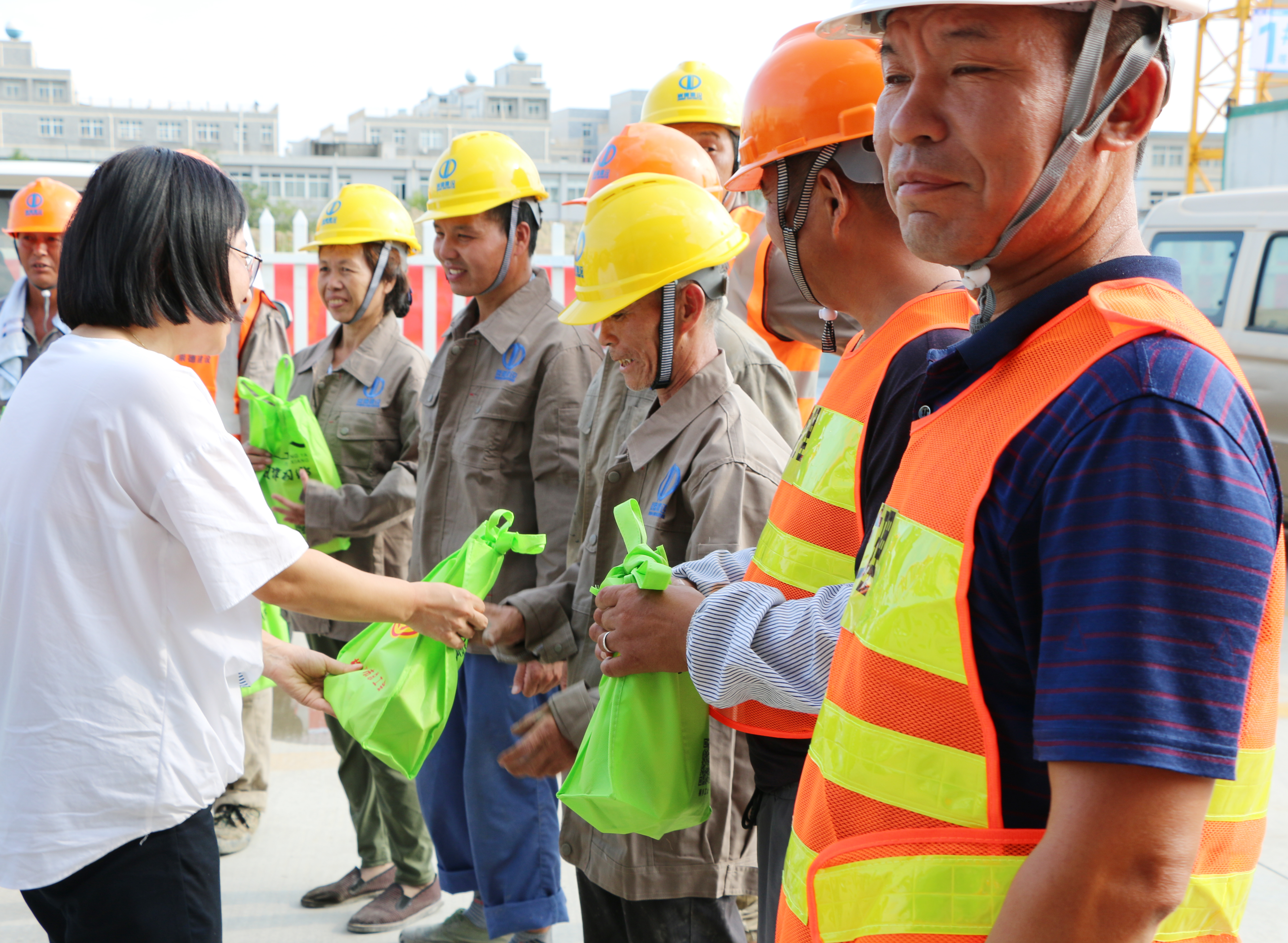 在項目現場,吳副主席一行詳細詢問了項目工地防暑降溫措施及安全生產工作情況,并將慰問品一一送到建筑工人手中,對大家在高溫期間堅守崗位表示感謝,叮囑他們要保護好自己的身體,做好防暑降溫。
