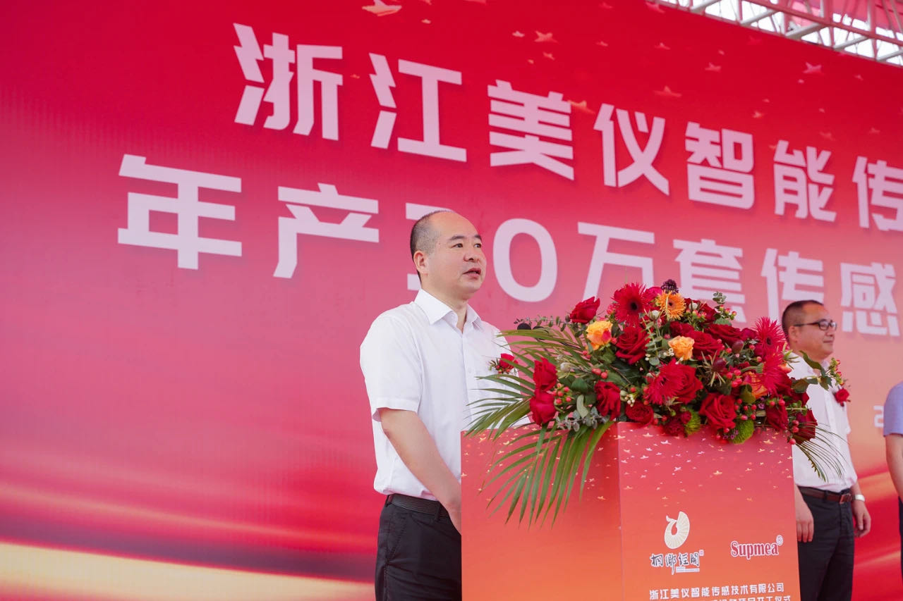 桐鄉(xiāng)市領(lǐng)導(dǎo)蔡立新、沈建坤、李云飛出席開工儀式。美儀董事長丁程、中國儀器儀表行業(yè)協(xié)會秘書長李躍光、中控科技集團創(chuàng)始人褚健、桐鄉(xiāng)經(jīng)開區(qū)黨工委書記屠建忠分別致辭。