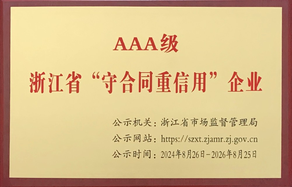 3A級浙江省“守合同重信用”企業(yè)
