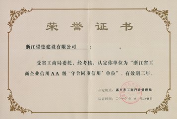 浙江省工商企業信用(AA級)守合同重信用單位